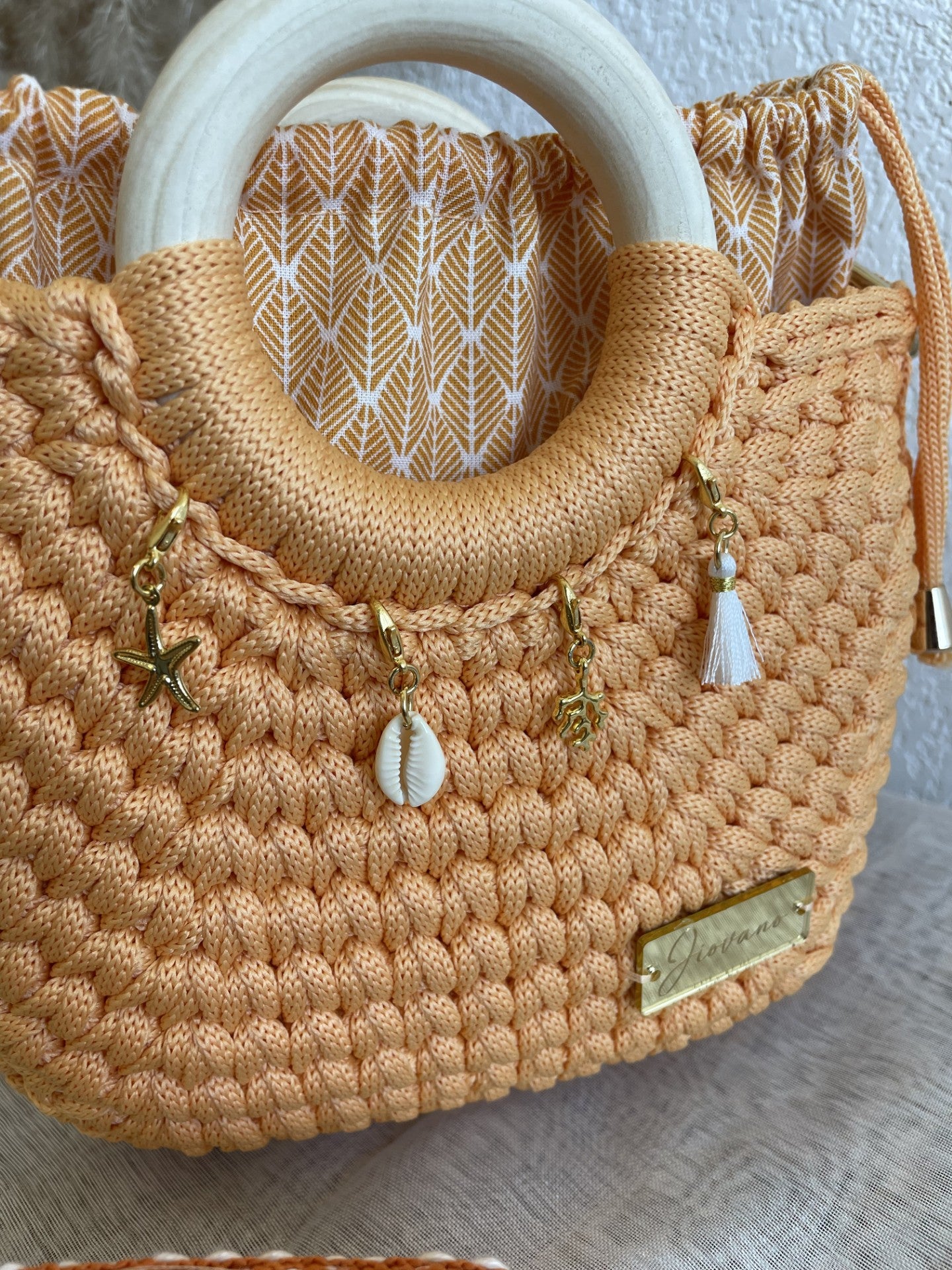 Entièrement doublé, il offre une finition soignée et une meilleure protection pour vos affaires. Il se ferme comme un pochon grâce à un lien coulissant pour garder vos essentiels en sécurité. Les anneaux en bois naturel qui soutiennent les anses apportent une touche artisanale authentique et chaleureuse.