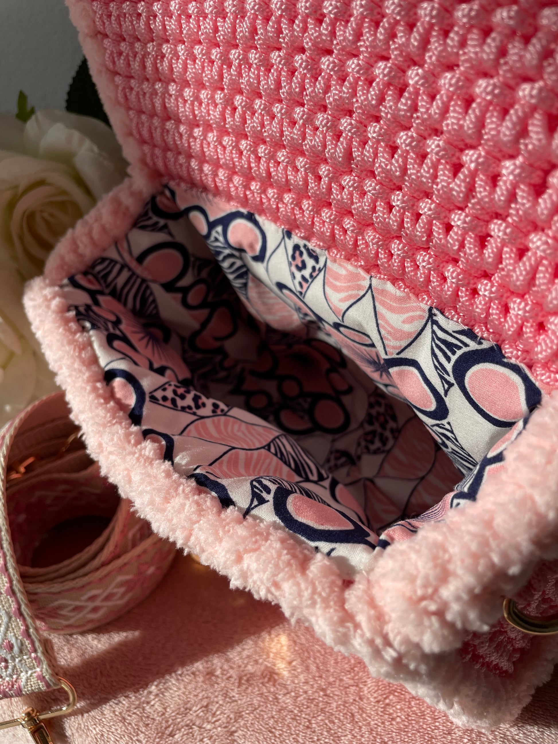 Doté d'une bandoulière réglable ou d'une chaîne avec une partie crochetée, assortie au sac. Il s'adapte à votre confort, que vous le portiez à l'épaule ou en croisé. Chaque sac est une pièce unique confectionnée avec passion pour allier charme bohème et modernité.