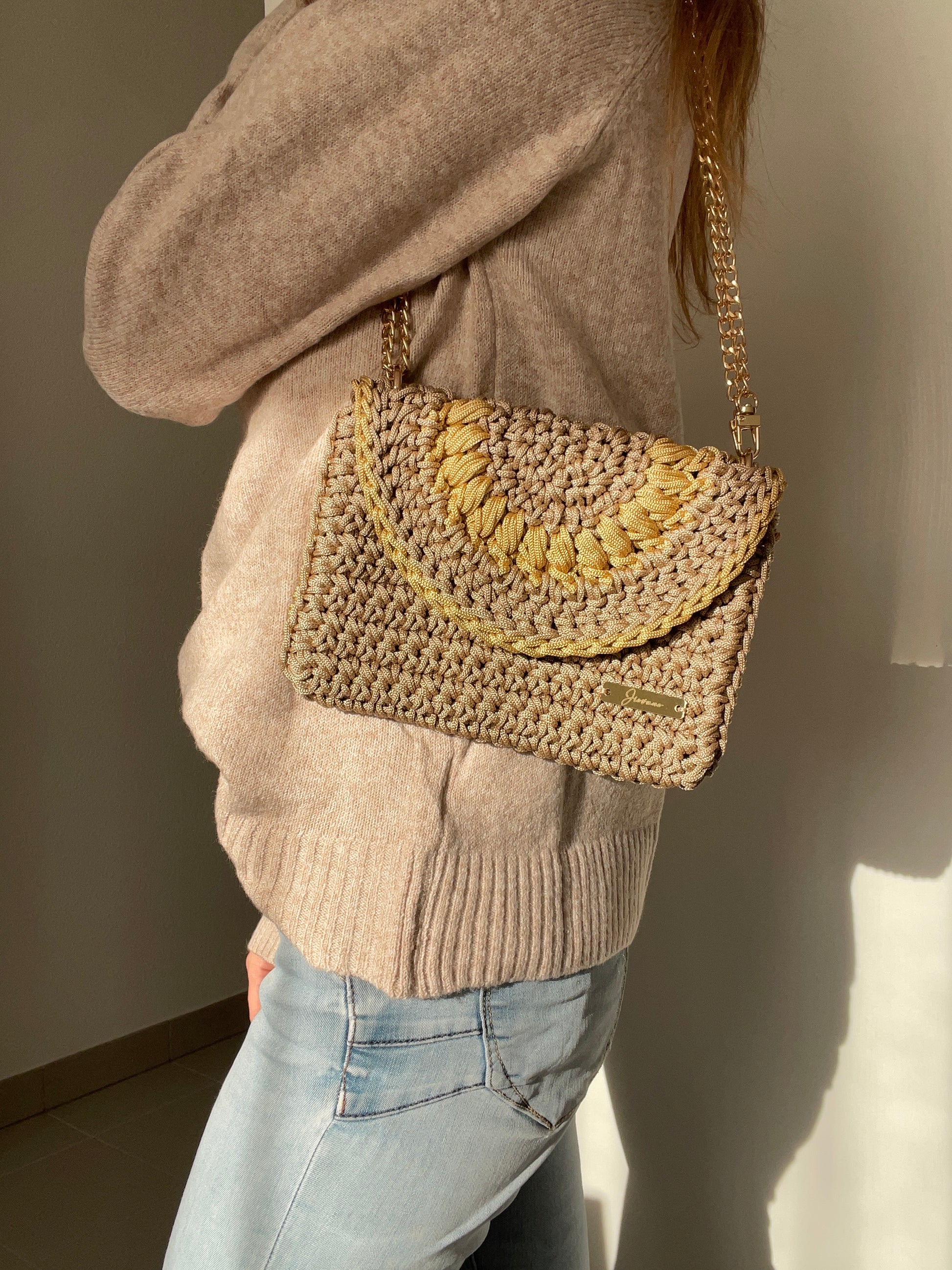 La Soléa, une pochette simple et utile pour le quotidien entièrement crocheté à la main, parfaite pour illuminer toutes vos tenues. Se porte à l’épaule ou en bandoulière grâce à sa chaîne.